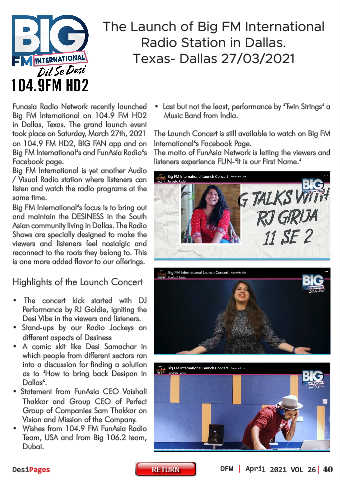 took place on Saturday, March 27th, 2021 The Launch Concert is still available to watch on Big FM
