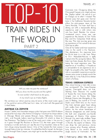 San Fransisco. The Zephyr is one of the most scenic rides in the country region of Siberia as the train stops