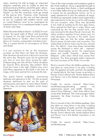Maha Shivaratri (falls on March 1st 2022) Shivratri only returned to life when Parvati intervened. His