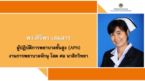 พว.ศิริพร เสมสาร ผู้ปฏิบัติการพยาบาลขั้นสูง (APN) งานการพยาบาลจักษุ โสต ศอ นาสิกวิทยา