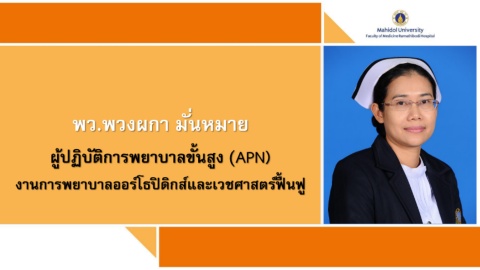 พว.พวงผกา มั่นหมาย ผู้ปฏิบัติการพยาบาลขั้นสูง (APN) งานการพยาบาลออร์โธปิดิกส์และเวชศาสตร์ฟื้ นฟู