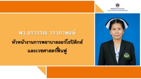 พว.อรวรรณ วราภาพงษ์ หัวหน้างานการพยาบาลออร์โธปิ ดิกส์ และเวชศาสตร์ฟื้ นฟู