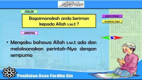 Bagaimanakah anda beriman kepada Allah s.w.t ? • Mengaku bahawa Allah s.w.t ada dan melaksanakan perintah-Nya dengan sempurna