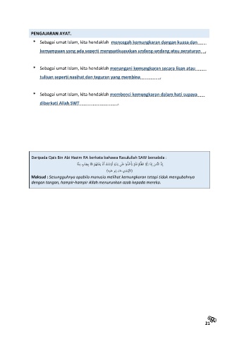 * Sebagai umat Islam, kita hendaklah mencegah kemungkaran dengan kuasa dan .
