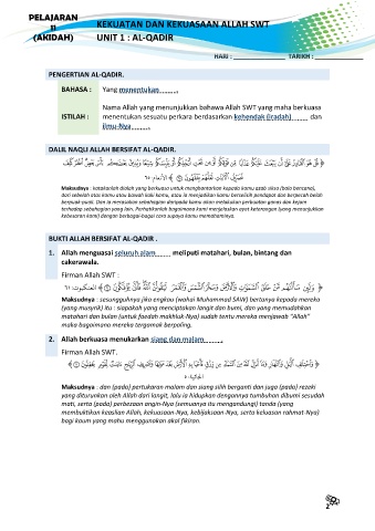 (AKIDAH) UNIT 1 : AL-QADIR