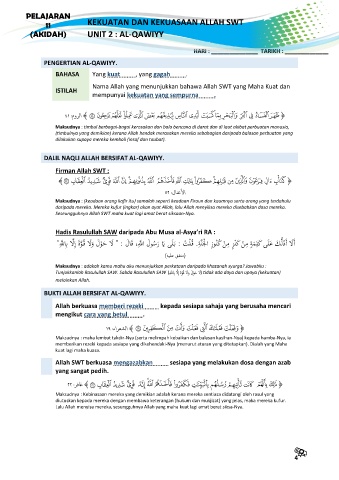 (AKIDAH) UNIT 2 : AL-QAWIYY