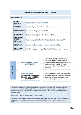SAIDATINA FATIMAH RA RATU SYURGA