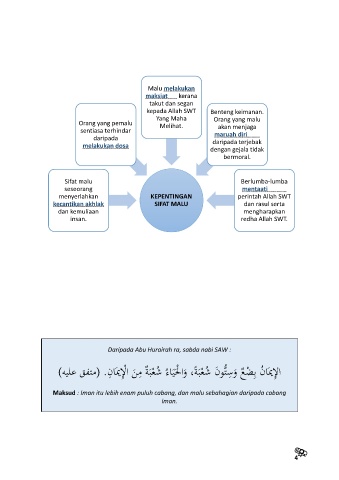 Maksud : Iman itu lebih enam puluh cabang, dan malu sebahagian daripada cabang