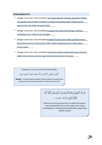 * Sebagai umat Islam, kita hendaklah bertanggungjawab menjaga perpaduan dalam .