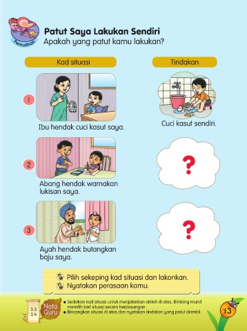 l Sediakan kad situasi untuk menjalankan aktiviti di atas. Bimbing murid