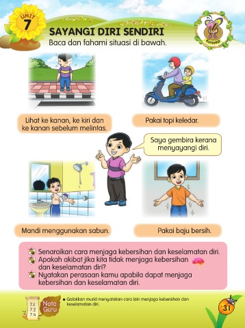 Senaraikan cara menjaga kebersihan dan keselamatan diri.