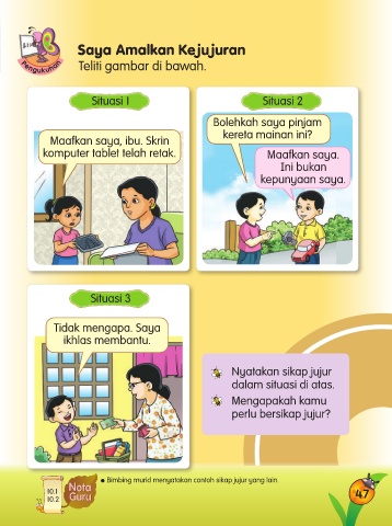 l Bimbing murid menyatakan contoh sikap jujur yang lain.