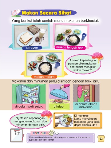 Minta murid ceritakan cara lain menyimpan makanan dan minuman 93