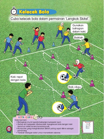 • Setiap ahli kumpulan dikehendaki mengelecek bola dengan kaki 1.4.9,