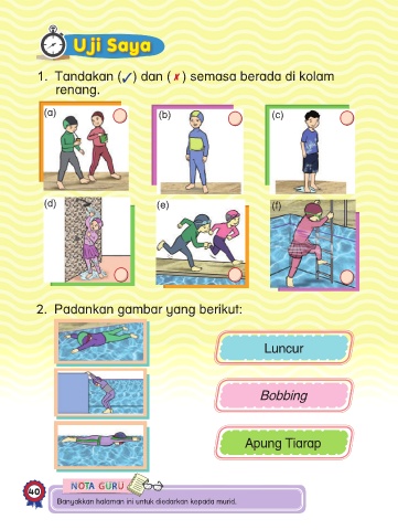 1. Tandakan ( ) dan ( ) semasa berada di kolam
