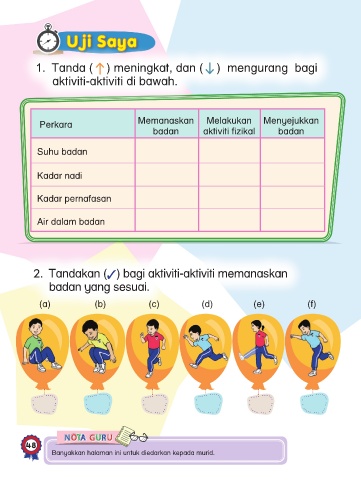 2. Tandakan ( ) bagi aktiviti-aktiviti memanaskan