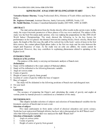 study, the major kinematic parameters of these phases of the race were analyzed. The subject of the