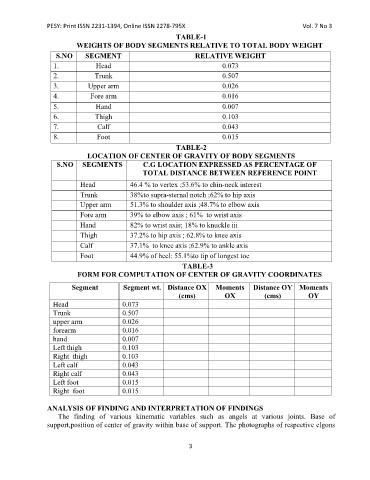 LOCATION OF CENTER OF GRAVITY OF BODY SEGMENTS