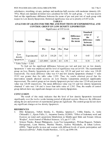 intervention namely physical exercise on Low Density Lipoprotein produced significantly