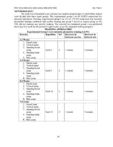 intensity plyometric Training, experimental group-2 (n=10, LI- PT-AT) underwent low intensity