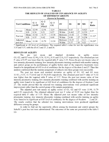 THE RESULTS OF ANALYSIS OF COVARIANCE ON AGILITY
