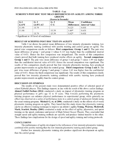 SCHEFFE’S POST HOC TEST MEAN DIFFERENCES ON AGILITY AMONG THREE