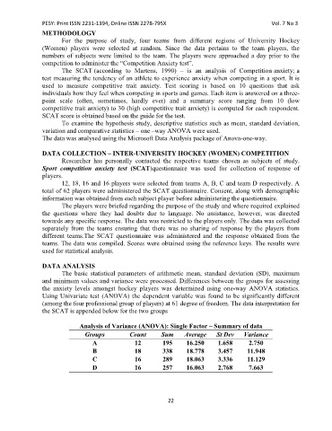 Sport competition anxiety test (SCAT)questionnaire was used for collection of response of