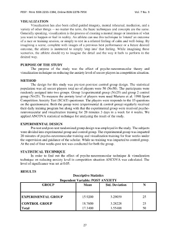 visualization technique on reducing the anxiety level of soccer players in competition situation.