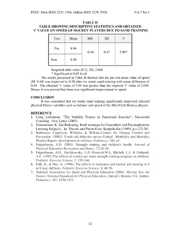 ‘t’ VALUE ON SPEED OF HOCKEY PLAYERS DUE TO SAND TRAINING