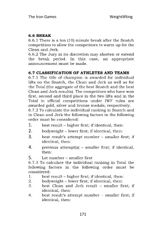 6.6.1 There is a ten (10) minute break after the Snatch