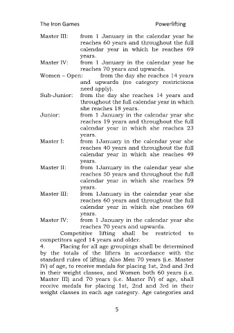 standard rules of lifting. Also Men 70 years (i.e. Master