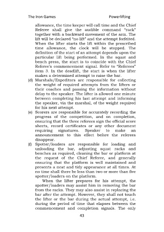 the lifter or the bar during the actual attempt, i.e.