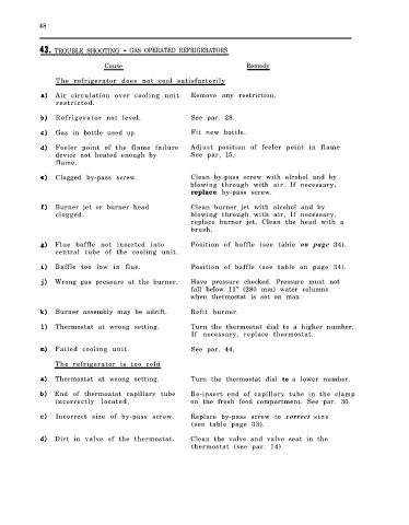 TROUBLE SHOOTING GAS OPERATED REFRIGERATORS