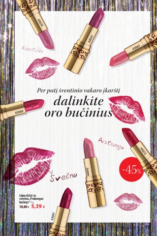 43074 44041 43067 Koketiska > Per patį šventinio vakaro įkarštį dalinkite 43068 oro bučinius Aistringa Svelnu 44042 -45% 43072 > Lūpų dažai su serumu „Prabangus bučinys“ 4 g 10,00 € 5,39 € 43081 faberlic 2018 Nr. 18 15