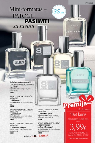 dezodorantas vyrams 30. Cruiser 3605 gelis vyrams 34. Cruiser 8121 4. „8 Element Cologne“ 6. „Vent d’Aventures“ 3,99€