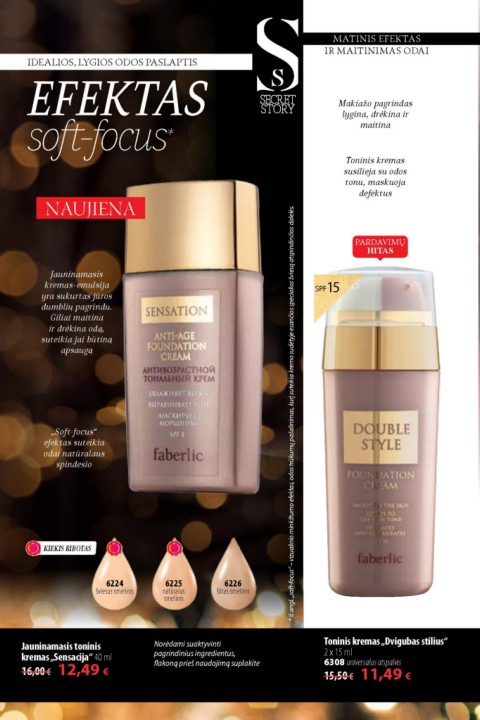 „Soft-focus“ * iš angl. „soft-focus“ – vizualinio minkštumo efektas, odos trūkumų pašalinimas, kurį suteikia kremo sudėtyje esančios specialios šviesą atspindinčios dalelės.