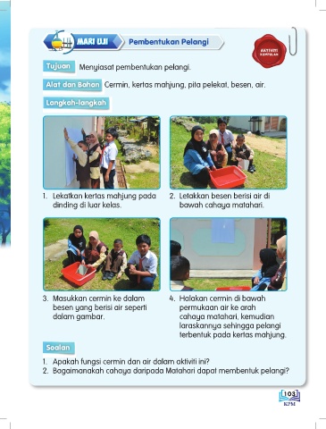 1. Apakah fungsi cermin dan air dalam aktiviti ini?