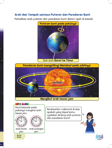 Perhatikan arah putaran dan peredaran bumi dalam rajah di bawah.