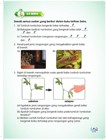 1. (a) Tumbuh-tumbuhan bergerak balas terhadap ____.