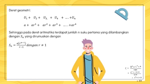 Deret geometri: + + 3, + 4 + … . + 2 1 1 3 2 + + + + … . . + 4 Sehingga pada deret aritmatika terdapat jumlah n suku pertama yang dilambangkan dengan yang dirumuskan dengan −1 = −1 ≠ 1