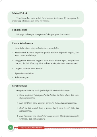 - Tata bahasa: Kalimat imperatif positif, kalimat imperatif negatif, kata