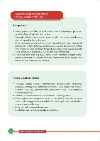 khusus, dan fungsional berbentuk descriptive (kelas VII & VIII), recount,