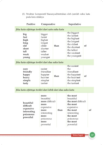 (1) Struktur komparatif biasanyaditentukan oleh jumlah suku kata