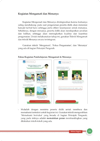Kegiatan Mengamati dan Menanya diintegrasikan karena keduanya