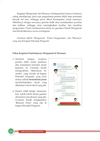 Kegiatan Mengamati dan Menanya diintegrasikan karena keduanya