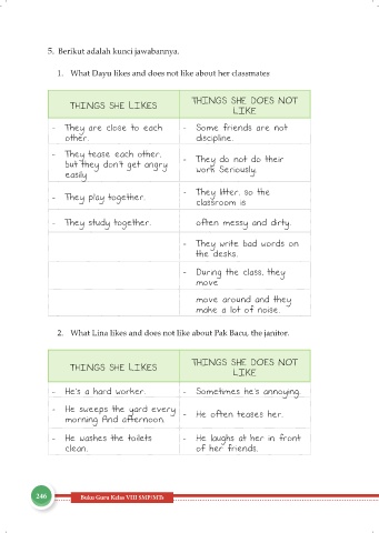 1. What Dayu likes and does not like about her classmates