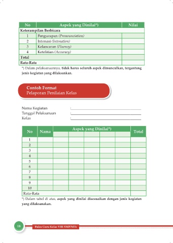 *) Dalam tabel di atas, aspek yang dinilai disesuaikan dengan jenis kegiatan