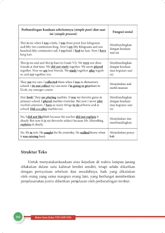 Perbandingan keadaan sebelumnya (simple past) dan saat