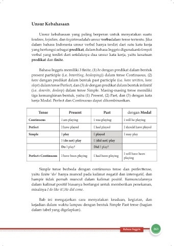 keadaan, kejadian, dan kegiatanadalah unsur verbadalam tense tertentu. Jika