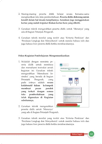 menghasilkan teks-teks pemberitahuan. Peserta didik didorong untuk